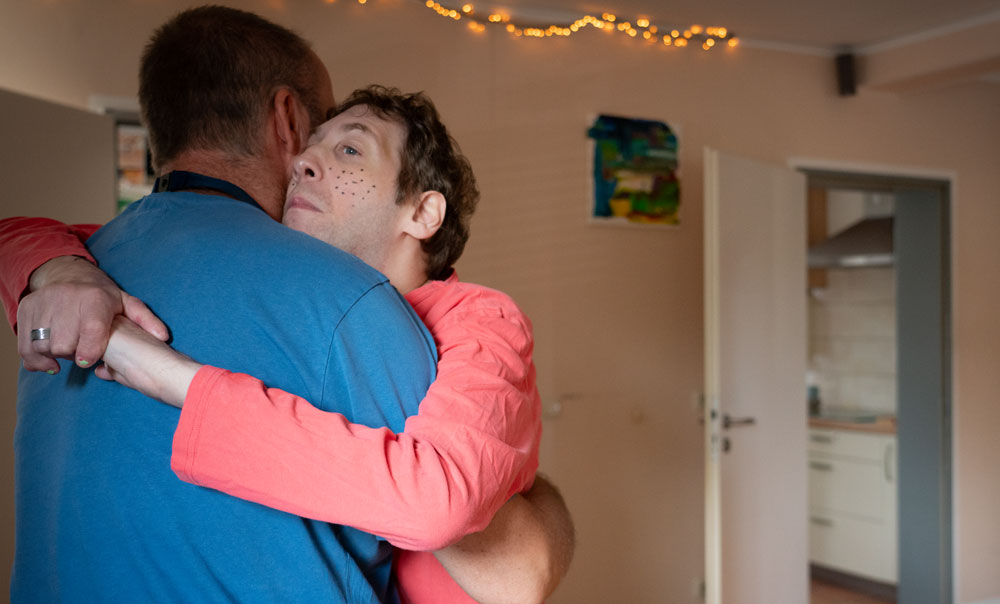 F.B.: „Dadurch, dass die Zusammenarbeit fast blind läuft und so eine Ruhe ausstrahlt, dadurch ist das Gruppenleben viel ruhiger geworden. Wenn ich überlege, vor zwei Jahren, wie ich hier angefangen habe, da war der Alltag einfach dominiert von Krisen. Da ist man teilweise von einer Krise in die nächste gegangen. Und hier nach acht Stunden raus und war einfach fix und fertig. Und mittlerweile, ja, wenn’s gut läuft, dann kann man ‘nen schönen Nachmittag haben mit den Leuten. Und wirklich – naja – ein stückweit Lebensqualität bieten. Ich meine, es soll ja ein Zuhause darstellen für die Bewohner.“
